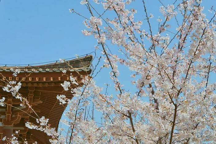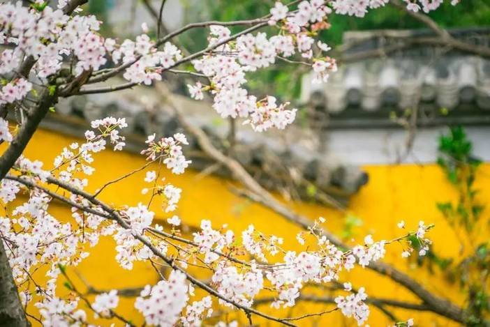 每到阳春三月,寺院内樱花相继盛开,春色满圆,姹紫嫣红,吸引了许多国内外游客前来观赏,感受春的气息。
