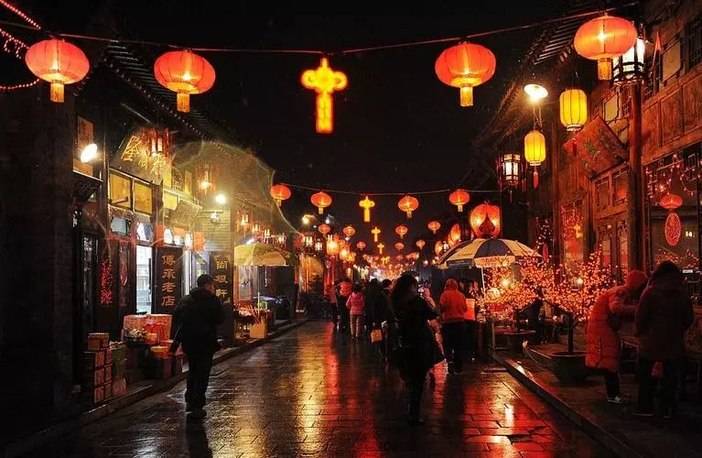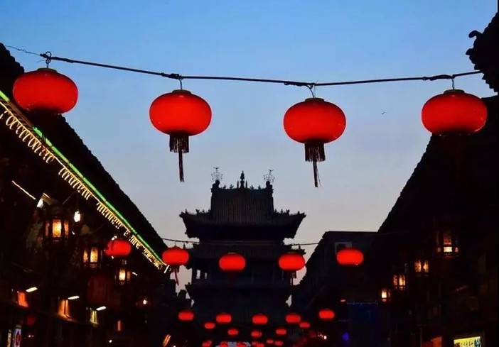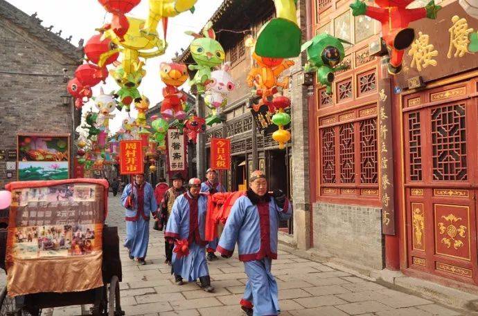 家家户户张灯结彩,老老少少剪窗花贴窗花,夜晚灯笼亮起,城内一片通红,和晋商大院相得益彰,仿佛穿越回了大红灯笼高高挂的年代。