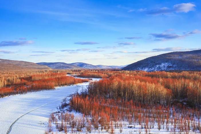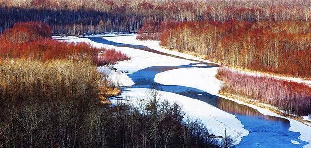 冰河红柳是大兴安岭最具特色的自然景观之一,每年3、4月份,呼玛河各沟系的红柳、白雪、冰河、霞色构成了一幅美丽的画卷。如云似火、错落跌宕、美不胜收。