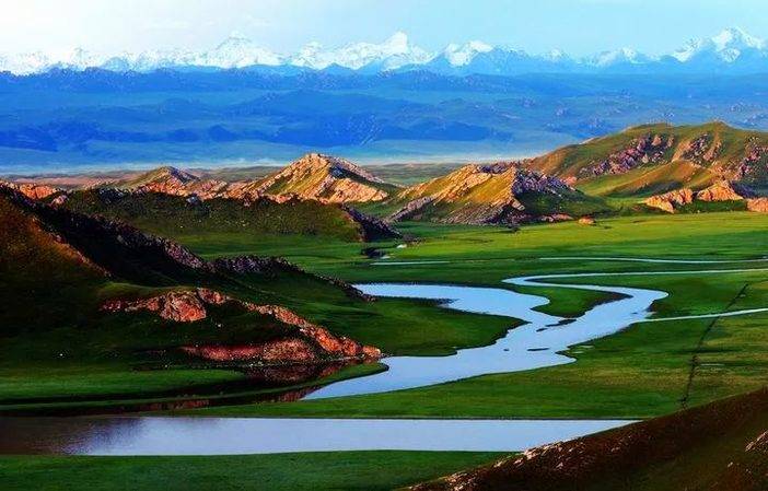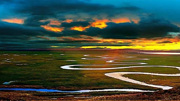6月左右,九曲十八弯的景色是最美的,届时,湿地被郁郁葱葱的绿草所覆盖,秀丽清新的小野花点缀草原。