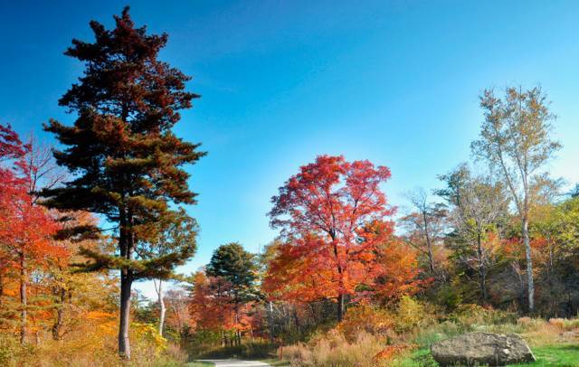 秋季来临时,奇石峻岭掩映在五花山色之中,分外美丽。
