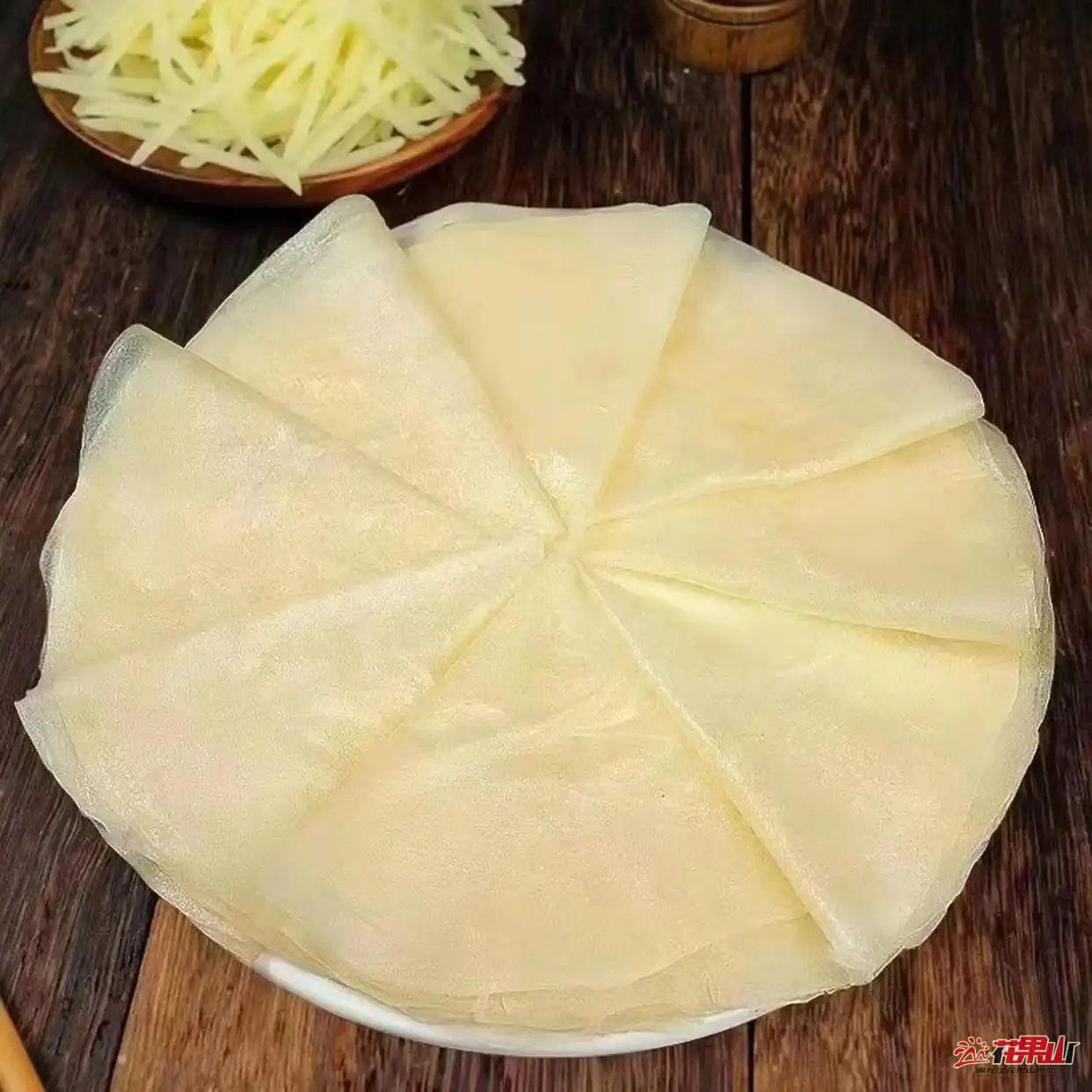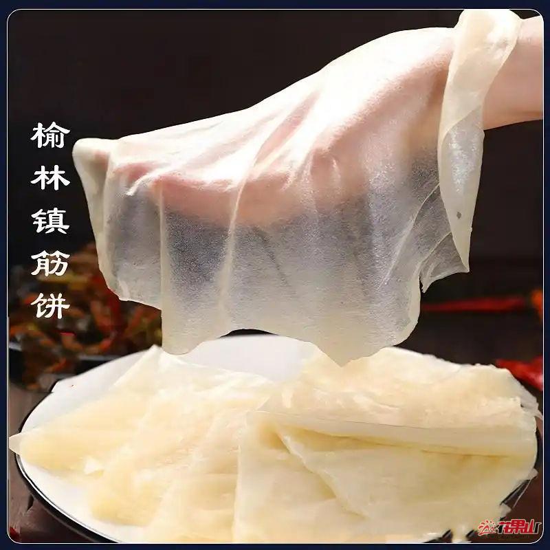 榆林筋饼,起源于北宋年间。据说,当时宋徽钦二帝被掳到北方后关押在五国城内,多日茶饭不进,命悬一线。 一位随从精通面食技艺,便精心制作了一张透亮的薄饼,中间加了些鸡肉丝和葱丝等,劝主公食下,谁知二帝吃后食欲大开,连连称好。后传到民间经不断揣摩演变,形成饼似圆月薄如蝉翼且筋性十足柔软可口的经典美食。
