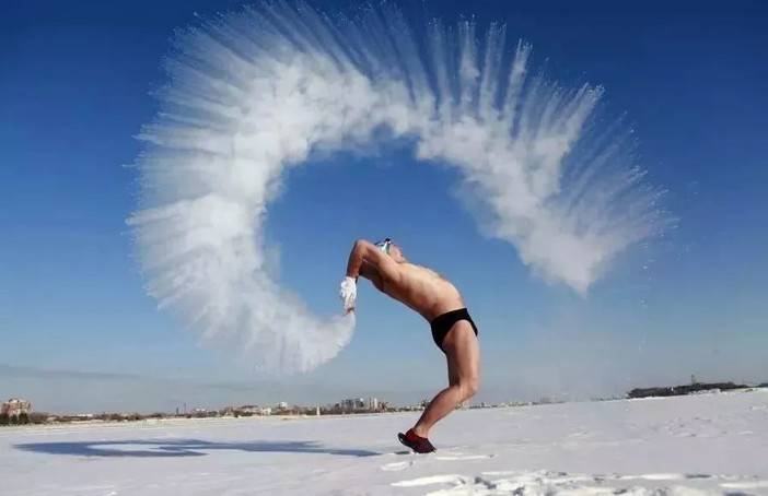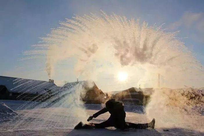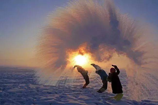 温度越低越好,零下25度以下的环境中进行,气候暖和的地方请勿模仿,以免烫伤自己。南方的孩子只有看了。没有这么低的温度的。