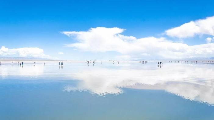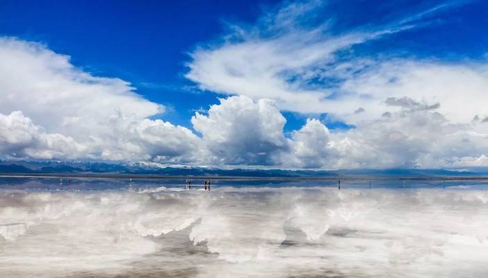与其它盐湖不同的是,茶卡盐湖镶嵌在雪山草地间而非戈壁沙漠上,被旅行者们称为中国“天空之镜”。
