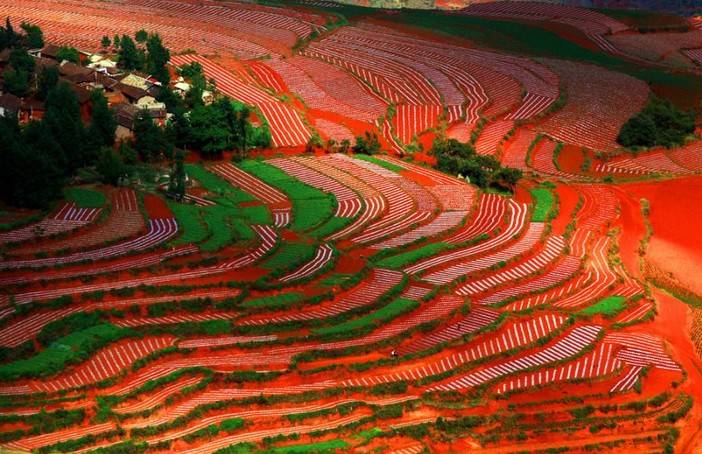 东川红土地位于昆明市东川区西南40多公里的红土地镇、一个叫“花石头”的地方,被专家认为是全世界除巴西里约热内卢外最有气势的红土地,而其景象甚至比巴西红土地更为壮美。