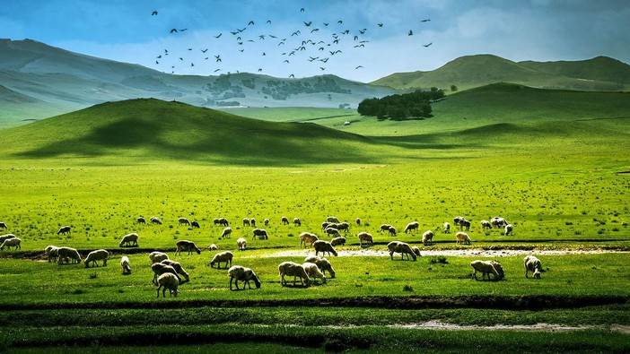置身于草清云淡、繁花遍野的茫茫碧野中,似有“天穹压落、云欲擦肩”之感。