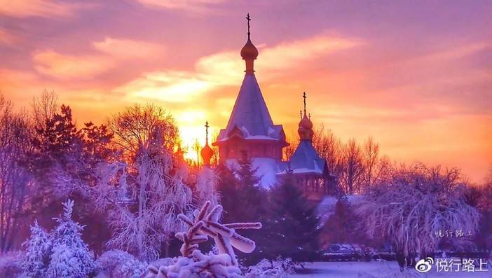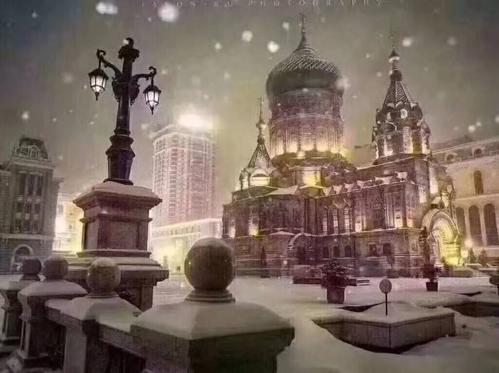 冬天的索菲亚教堂,银装素裹,雪花纷飞,是很多人心目中的梦幻城堡。