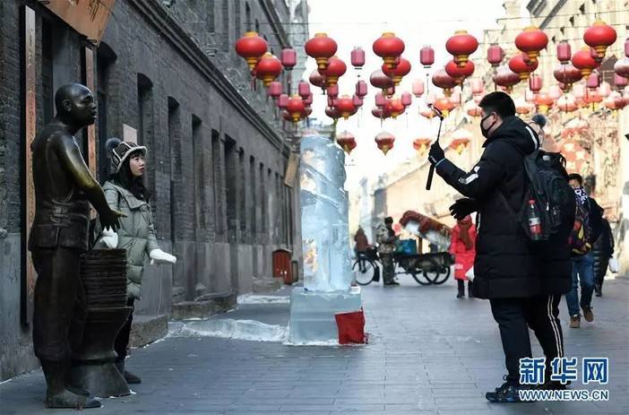 近日,中华巴洛克街区修建完成了多处冰雕,老街添新景,“冰装”迎接八方来客。