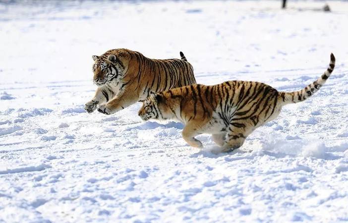 作为森林之王,在雪中巡视领地的东北虎更显霸气。