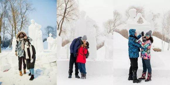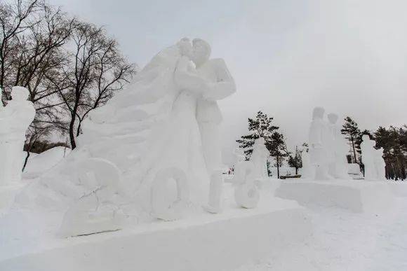 这些雪雕重现了情侣间相爱的浪漫时刻,也成功开启今冬哈尔滨旅游的新玩法。