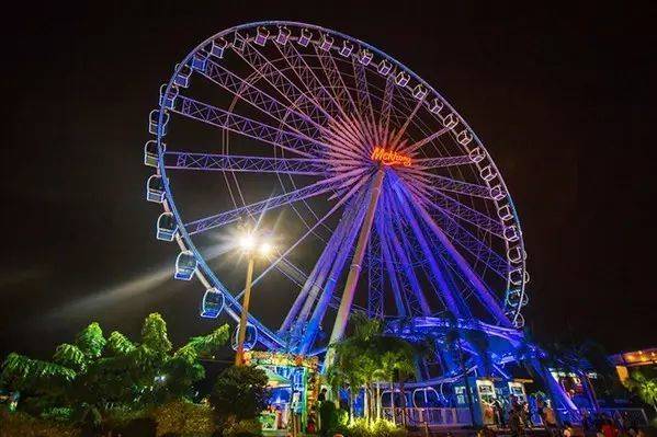 摩天轮转动速度缓慢,28分钟旋转一周,不恐高的人并不会害怕,你可以看到车辆从两边疾驰而过,很有趣!