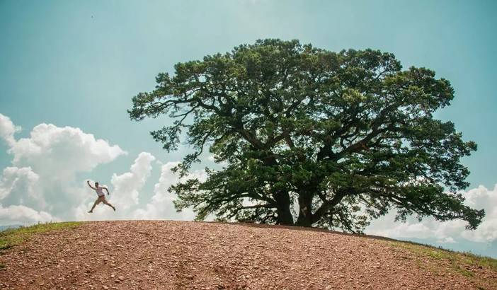 电影里有一颗出现了好几次的大树,空旷幽远,意味深长。这棵树就是东川千年老龙树,位于东川红土地的一座山丘之上。