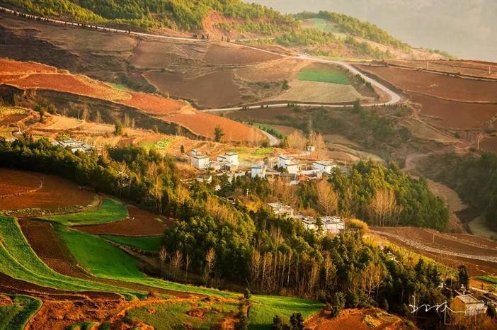 最佳季节:到红土地摄影最好的季节是9到12月,油菜、土豆、荞麦正在陆续收获,冬小麦正在发芽拔节,还有路旁、村子旁、树林里的杨树黄了,漆树红了;其次是1、2月,这时小麦生长正旺,月亮田里放满了水;还有就是5、6月,油菜花开了,麦子成熟了。这些季节是色彩丰富的季节