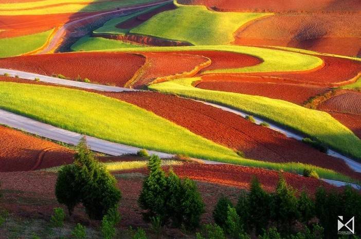而东川红土地,则大概是上帝不小心打翻的调色盘,它被专家认为是全世界除巴西里约热内卢外最有气势的红土地,而其景象比巴西红土地更为壮美。