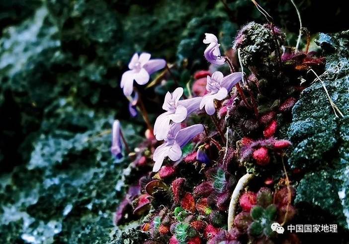 匍茎报春苣苔,在裸露石灰岩壁上绽放