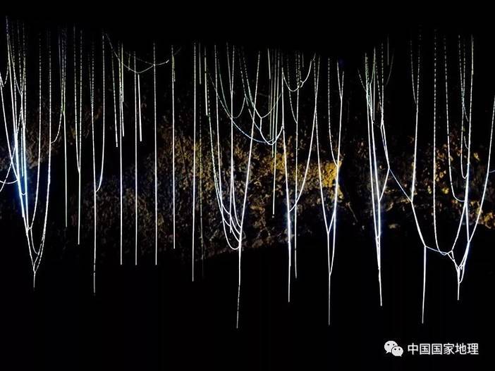 实际上这是一种洞穴昆虫的杰作,丝帘是它捕食其它昆虫的陷阱。除此之外,洞穴之中还隐藏着种种神奇生物,它们构成了一个我们目前所知甚少的神奇世界。(摄影 / 程斌)