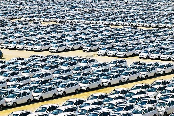 如今,柳州已成为全国汽车产量第三的城市,汽车产业链堪称柳州的生命线。图为柳州市汽车生产企业的成品车停车场。(摄影 / 霍仁惠)