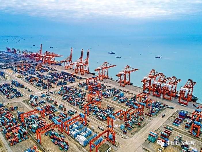 为了更好地发展北部湾经济,北海港和防城港的所有外贸集装箱航线全部转移到了钦州港。三港合一,造就北部湾最大的外贸集装箱货运码头。(图自《中国国家地理》2018年02月)