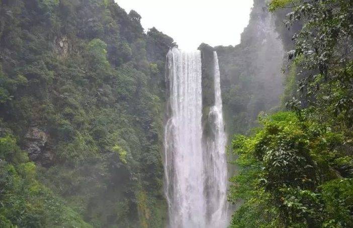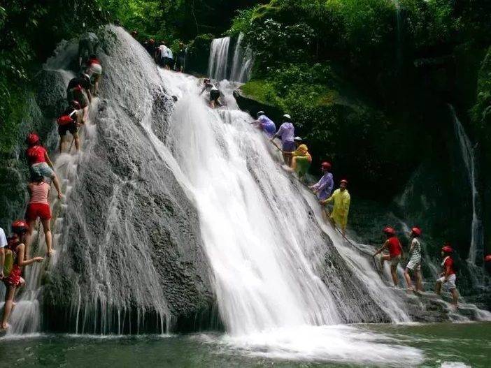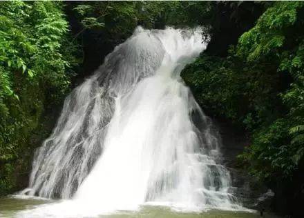 水流跌入深潭溅起层层水雾浪花,荫蔽幽静,是登山探险、森林寻幽之佳境。