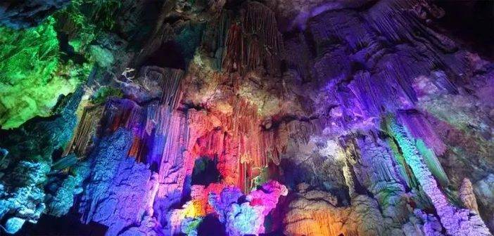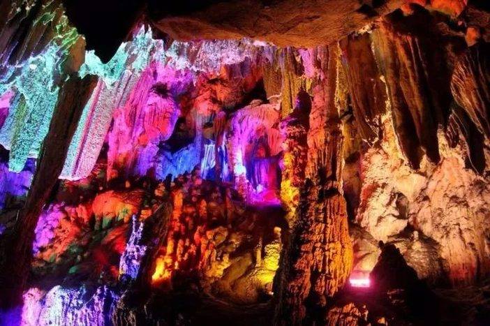 宛如夜空的银河倾斜而下,银子岩溶洞内汇集了不同地质年代发育生长的钟乳石,晶莹剔透,洁白无瑕。