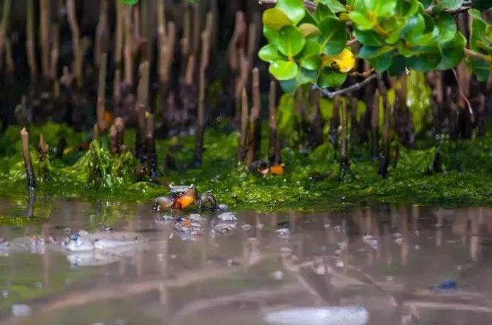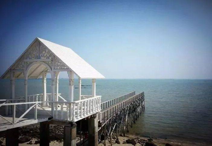 漫步于延伸向湿地深处的木栈桥,欣赏大片的红树林,在这里可欣赏群鹜飞天,蓝天碧海,红日白沙的诗意画卷。