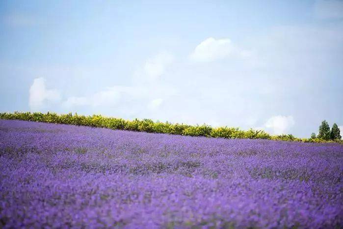 漫步在薰衣草庄园里,蓝天白云下,一缕缕淡淡的幽香,一簇簇蓝紫色的薰衣草在微风中摇曳,汇成紫色梦幻海洋。