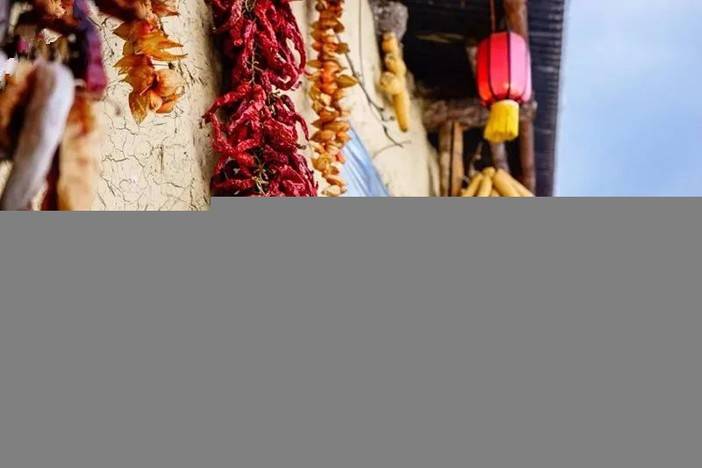 窗前挂着的玉米和辣椒还有红姑娘儿
