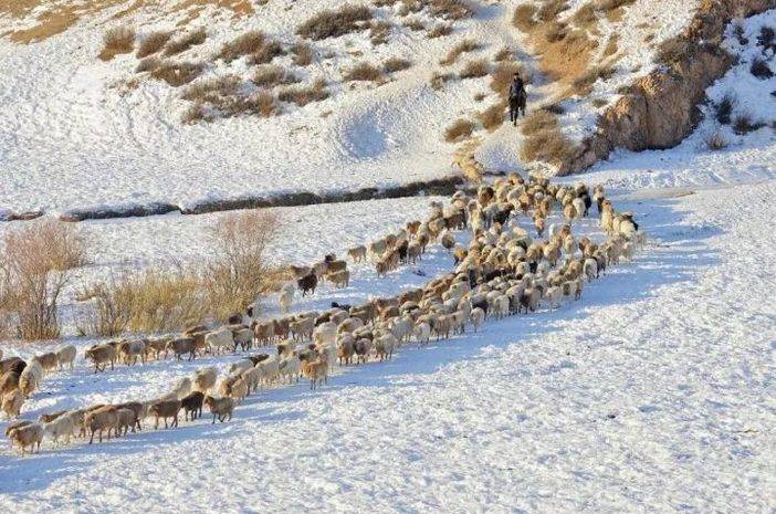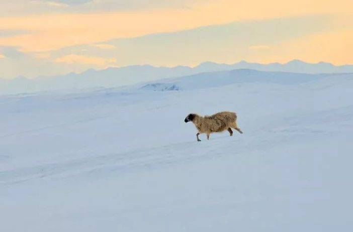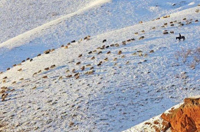 羊儿在雪地觅食