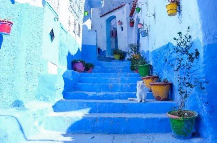 位于摩洛哥西北部的舍夫沙万小镇,所有的建筑都是蓝色的,浅蓝、深蓝、粉蓝,仿佛世间所有的蓝都在这里了。