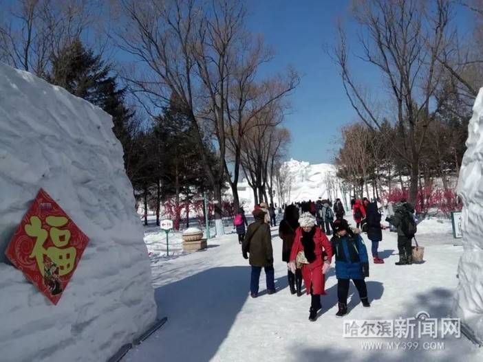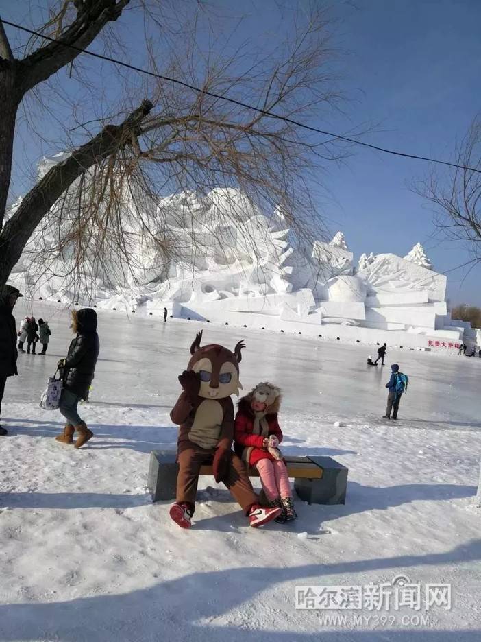 太阳岛雪博会“特惠门票”吸引了不少外地游客,65周岁以上老年人免费入园等政策,也引来了众多冰城家庭。