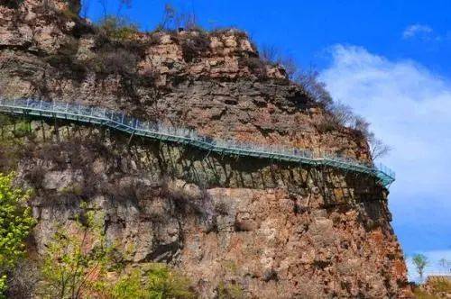 狼牙山因“狼牙山五壮士”而闻名,坐落于河北保定市。现今一座悬在高空的棋盘陀玻璃栈道为景区再添光彩。