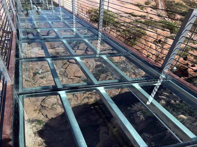 玻璃观景台主结构采用优质高强钢建造,下临450米深谷,高耸入云,台面采用多层水晶玻璃叠合而成,悬浮于高空中的全透明玻璃观景台,只有站在上面的人才能感受到它的“恐惧”与刺激!