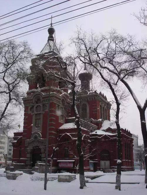 建于1908年,巴洛克式俄罗斯东正教教堂,位于军官街(现道里霁虹街)工厂胡同。折衷主义建筑,设计师为德尼索夫。