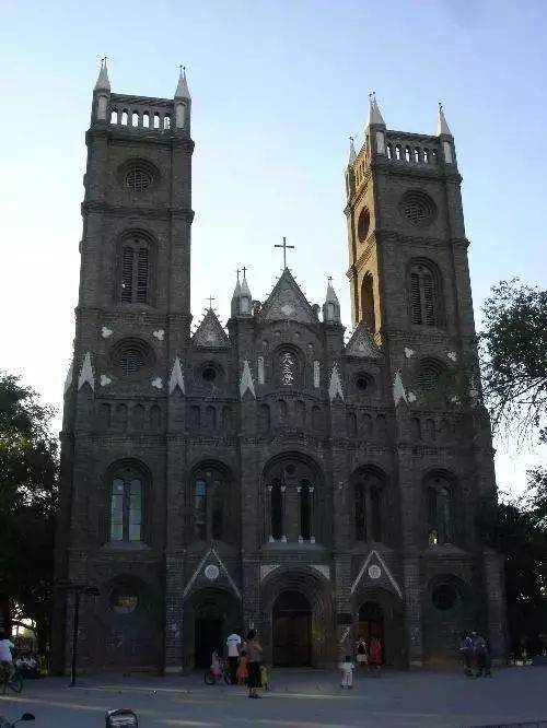 建筑面积836平方米。始建于清光绪三十四年(1908)。主体建筑系一座双塔型法国式教堂,高35米,青砖瓦土木结构,具有浓厚的欧式建筑艺术风格,其外观与法国巴黎圣母院的教堂建筑有相似之处。建筑中所有的门、窗均用青砖砌成拱形。在主体建筑两座塔楼中央顶端镶嵌着红铜制成的十字架。在第二层楼两塔中间处悬挂着黄铜铸造的大钟,钟体通高1.05米,周长0.95米。