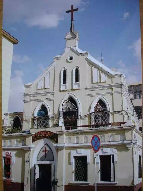 这是一座带有北欧风格的哥特式砖木结构的教堂。1914年由德国人倡议、中东铁路局和民间捐助建成。建筑师弗奥罗布设计、当时仅供德国侨民和各国领事馆的教徒使用。教堂规模小巧合理、解放后,辟为基督教堂,沿用至今。