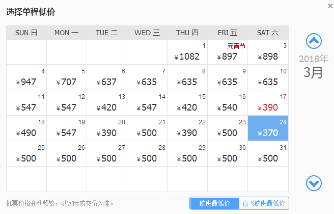(以上机票价格来源于携程网,机票价格随时在浮动,仅供参考,具体请以最终购买价格为准)