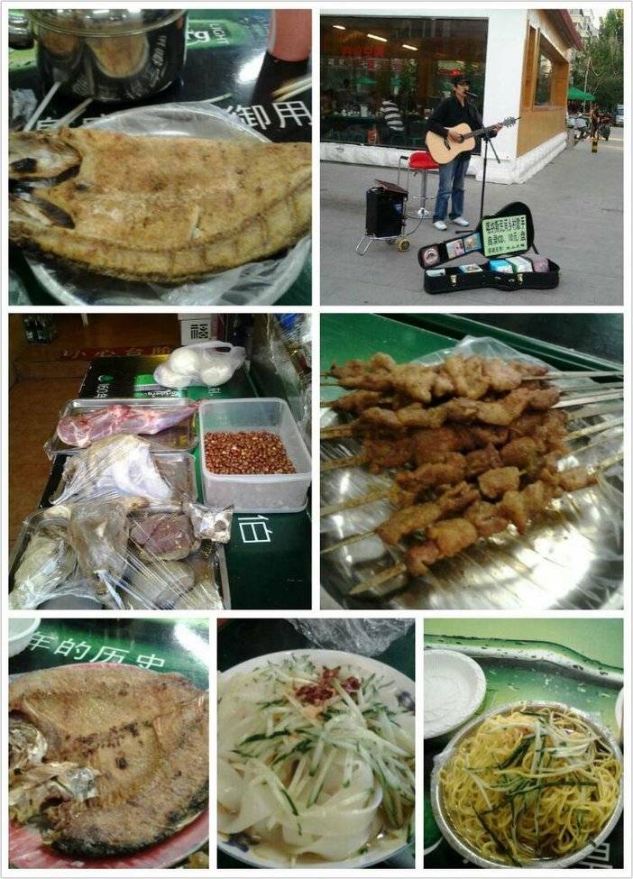 布尔津河堤夜市,烤肉,烤鲫鱼,烤狗鱼。品格瓦斯,额河酒和乌苏啤!