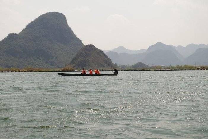 坝美~这是一个四周群山环绕的村庄,要出入村庄只能通过两个巨大的溶洞,划船通过地下暗河出入。