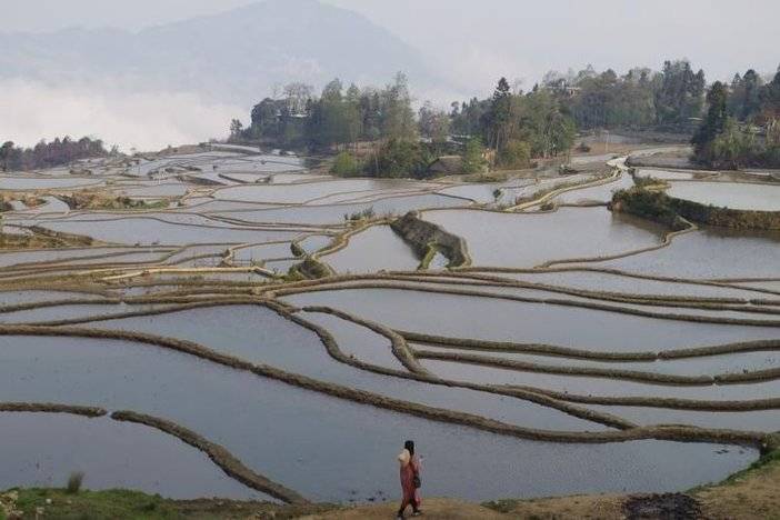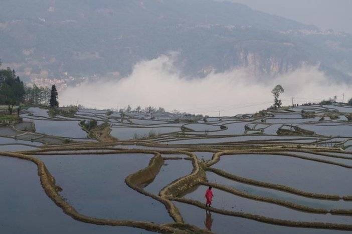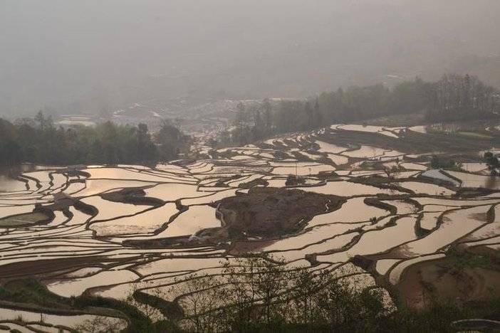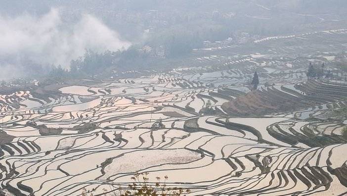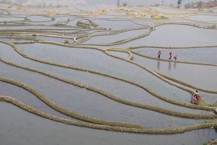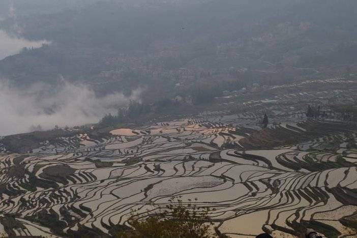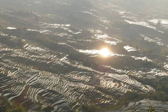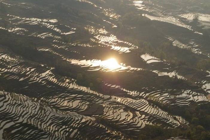 元阳梯田~以大地为画板,以农耕为画笔,千百年来生生不息。有1300多年的开垦历史的梯田,现已获准列入世界遗产名录。阳春三月,灌水后的梯田,阡陌纵横,层层叠叠,如同一面面透亮的镜子。倒映着云和彩霞,美不胜收。