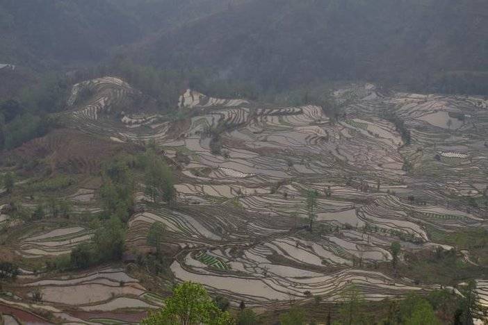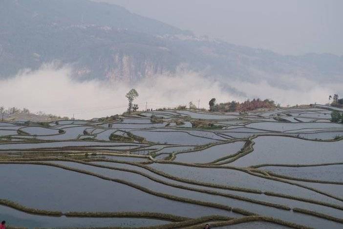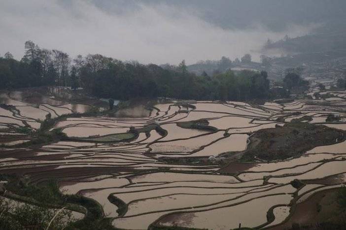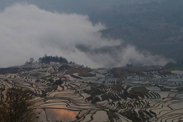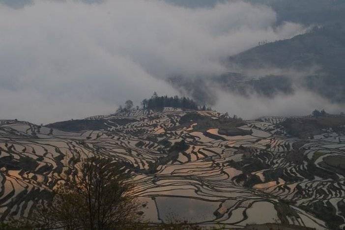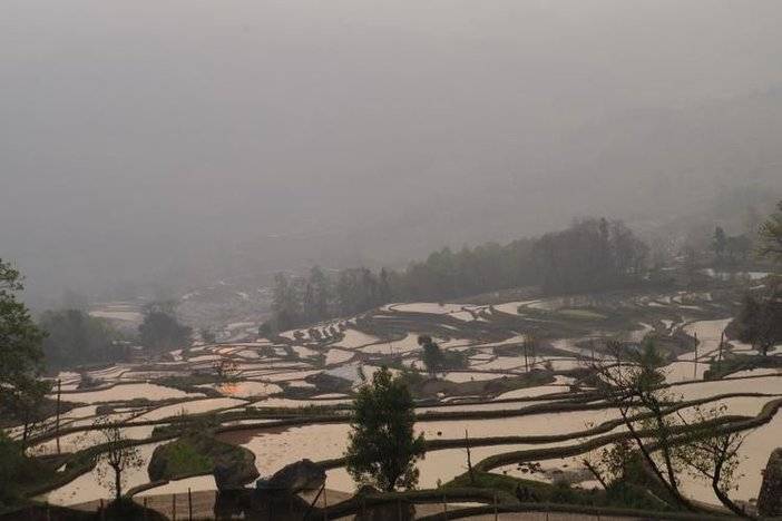 村子与梯田处于大山的包围之中,经常被这样云雾缭绕着……
