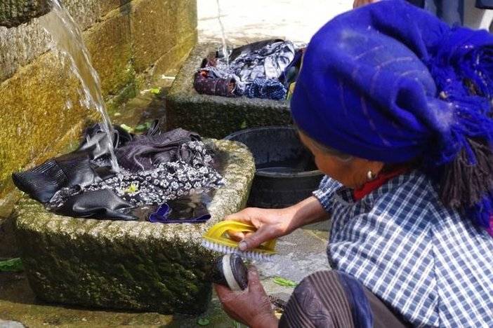 阿者科~村妇在洗衣服,这里不是每家一口井,而是很多家或整个村子公用一口水井。