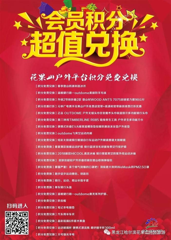 【花果山户外平台积分免费兑换,目前上线20多款可兑换商品】
