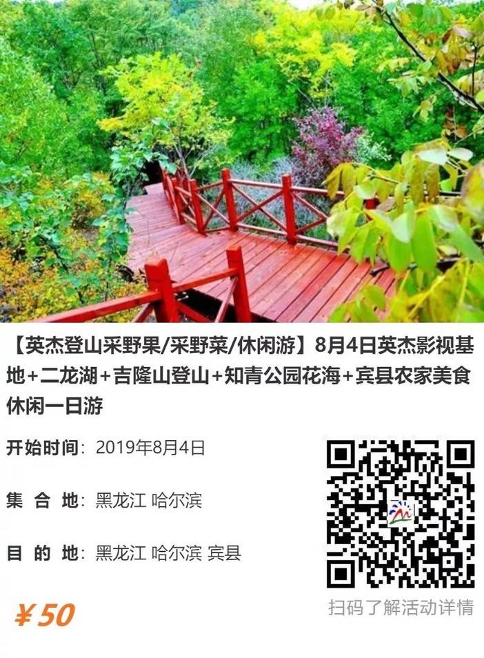 █【英杰登山采野果/采野菜/休闲游】8月4日英杰影视基地+二龙湖+吉隆山登山+知青公园花海+宾县农家美食休闲一日游 【50元】