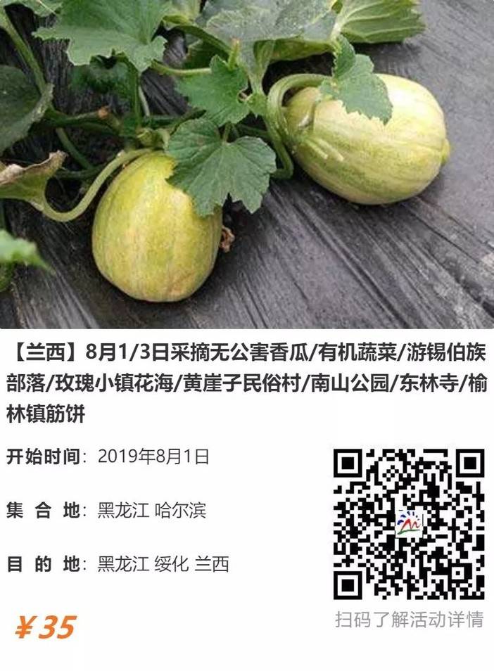 █【兰西游】8月1/3日采摘无公害香瓜/有机蔬菜/游锡伯族部落民族服饰小镇花海樱桃/黄崖子民俗村/南山公园/东林寺祈福/品榆林镇筋饼【35元】
