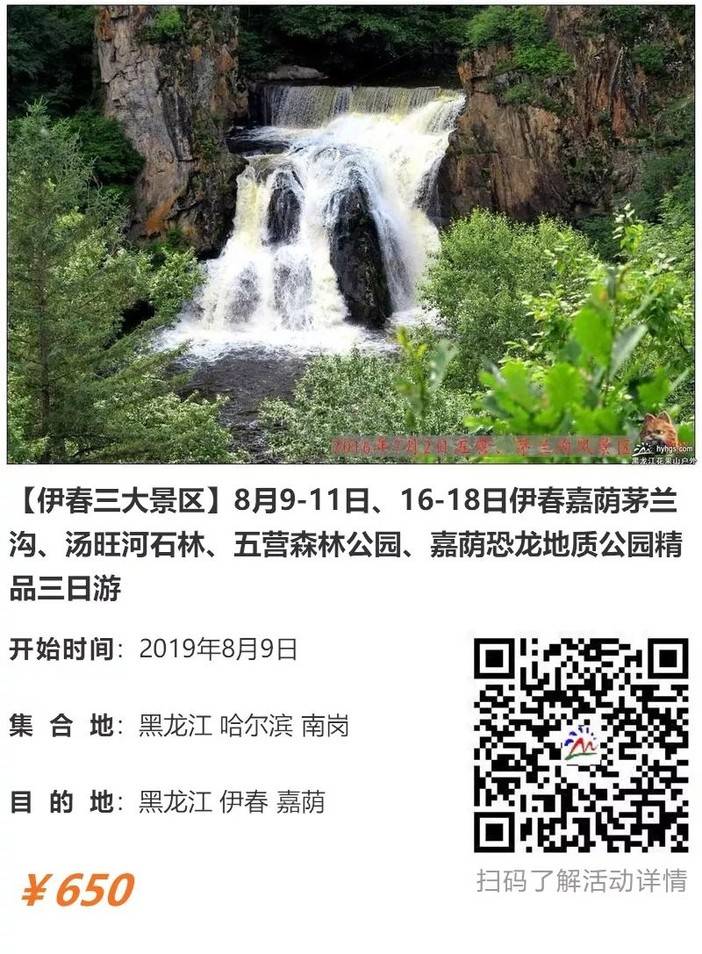 (●—●)【伊春三大景区】8月9-11日、16-18日伊春嘉荫茅兰沟、汤旺河石林、五营森林公园、嘉荫恐龙地质公园精品三日游 【650元含三大景区电瓶车门票食宿行】