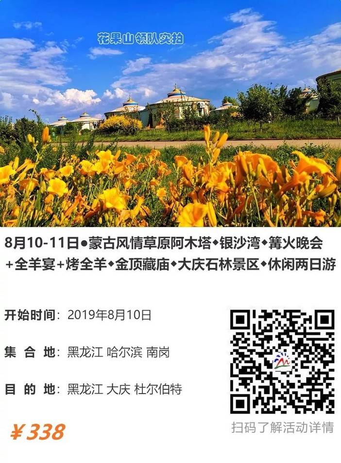 █8月10-11日●蒙古文化风情草原阿木塔◆杜蒙银沙湾◆荧光篝火晚会+全羊宴+全鱼宴◆金6顶藏庙◆大庆石林风景区◆休闲两日游【338元】