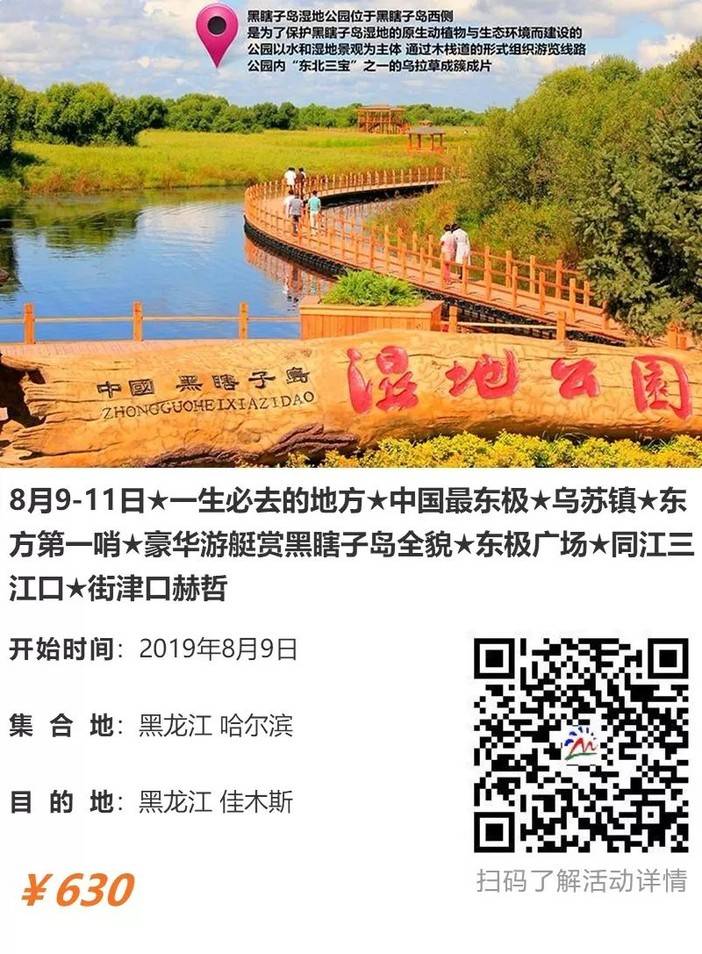 (●—●)8月9-11日★一生必去的地方★中国最东极★乌苏镇★东方第一哨★豪华游艇赏黑瞎子岛全貌★东极广场★同江三江口★街津口赫哲族文化★拉哈苏苏老海关旧址或七星岩景区★品质3日游【630元】