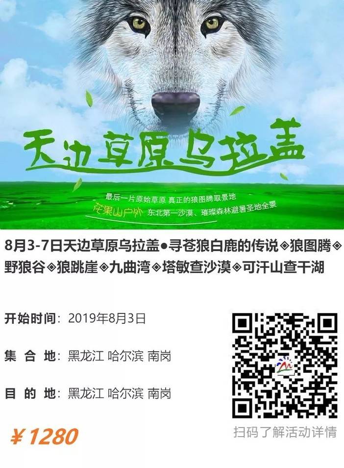 (●—●)【狼图腾乌拉盖】8月3-7日◈天边草原乌拉盖●寻苍狼白鹿的传说◈狼图腾◈野狼谷◈狼跳崖◈九曲湾◈塔敏查沙漠◈可汗山◈查干湖◈ 【1380元】