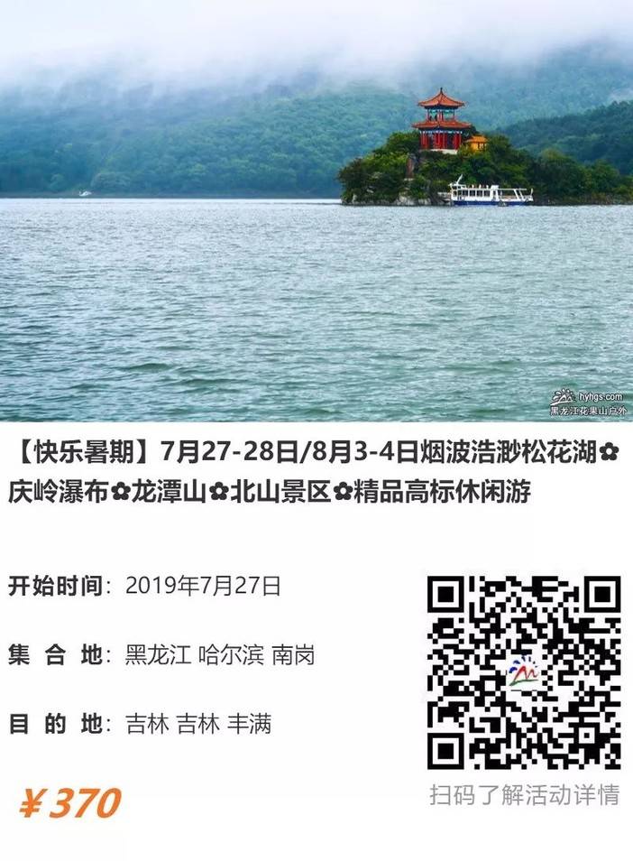 (●—●)【高标松花湖主景区370元】8月3-4日烟波浩渺松花湖✿庆岭瀑布✿龙潭山✿北山景区✿精品高标休闲游