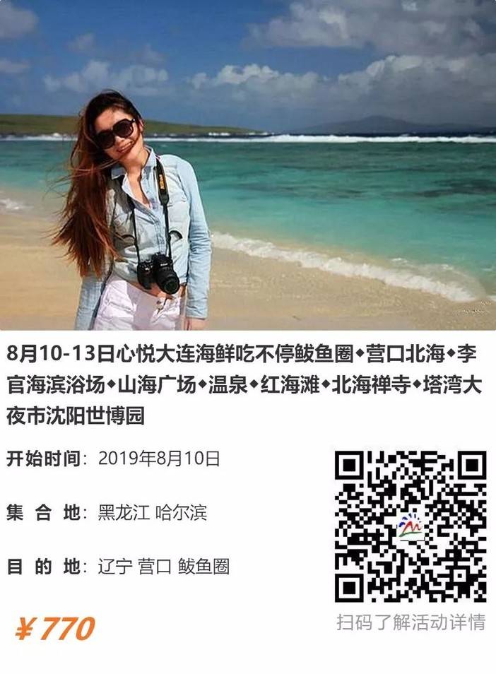 (●—●)8月10-13日心悦大连◆海鲜吃不停◆鲅鱼圈◆营口北海◆李官海滨浴场◆山海广场◆温泉◆红海滩◆北海禅寺◆塔湾大夜市沈阳世博园【770元】